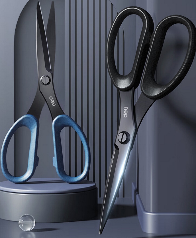 得力(deli)175mm人机造型剪刀 黑色防锈处理 办公用品 黑77790 自营
